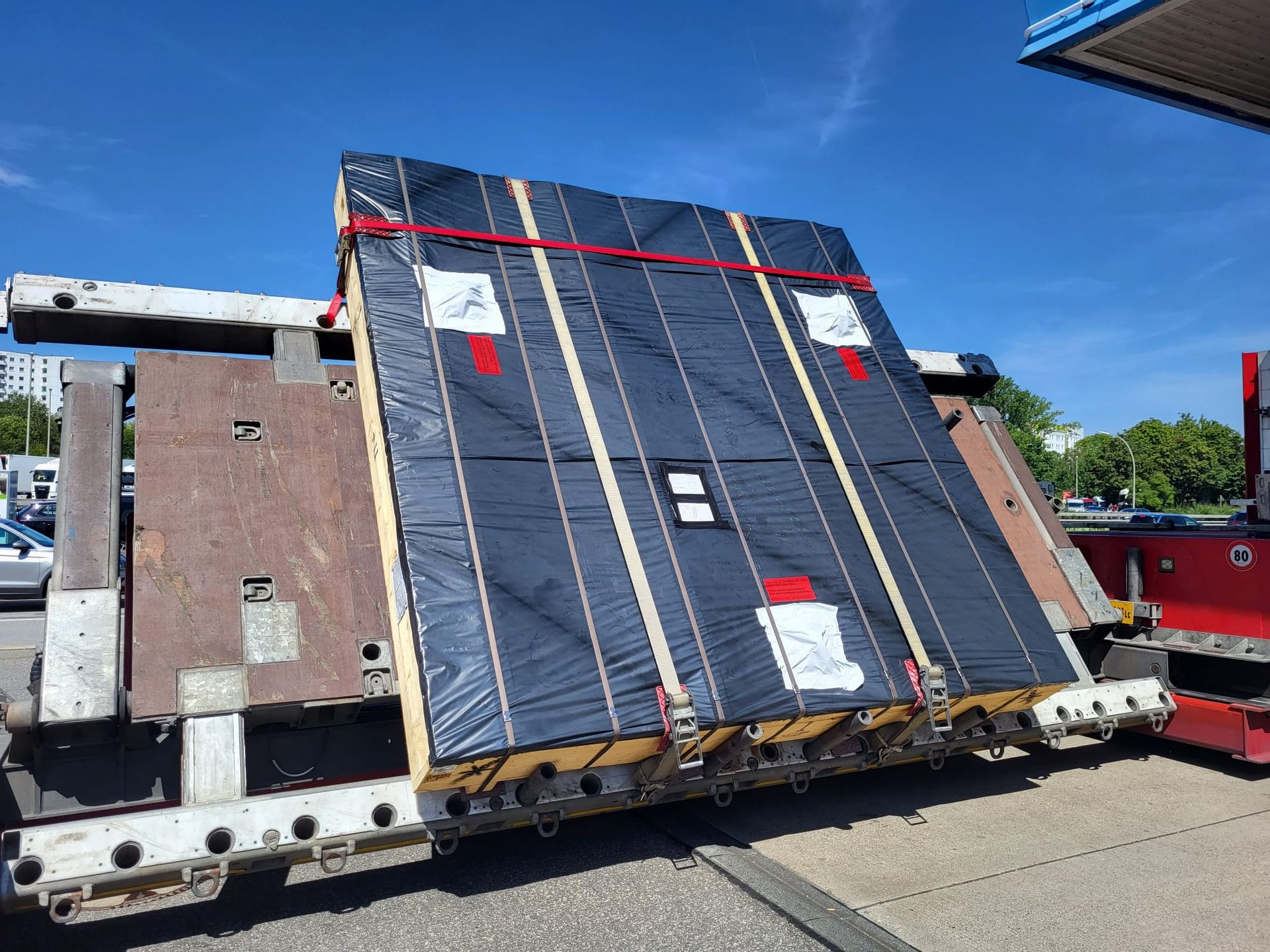 Heavy components are secured using appropriate lifting equipment and fastening systems to guarantee transport safety. Sensitive hydraulic components are packaged to protect against moisture, dust, and mechanical impact.